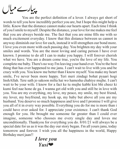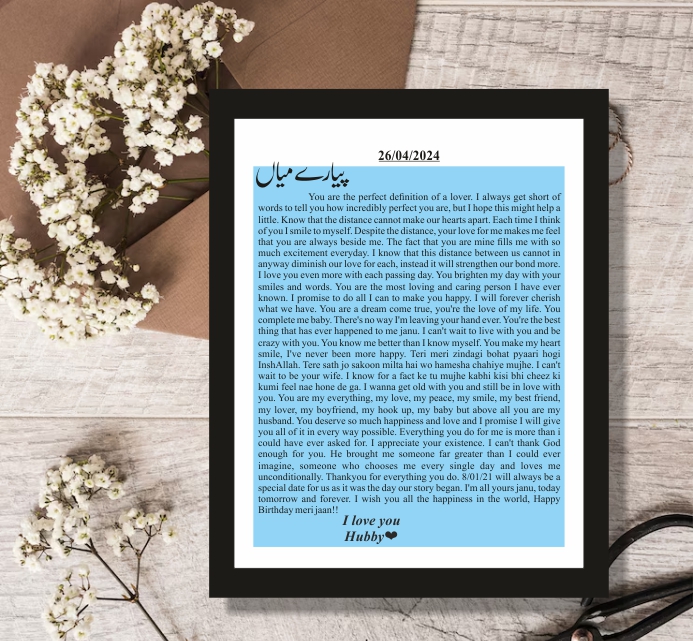 A personal letter, reasons why you love them, or any text printed and framed with a white border and black frame.